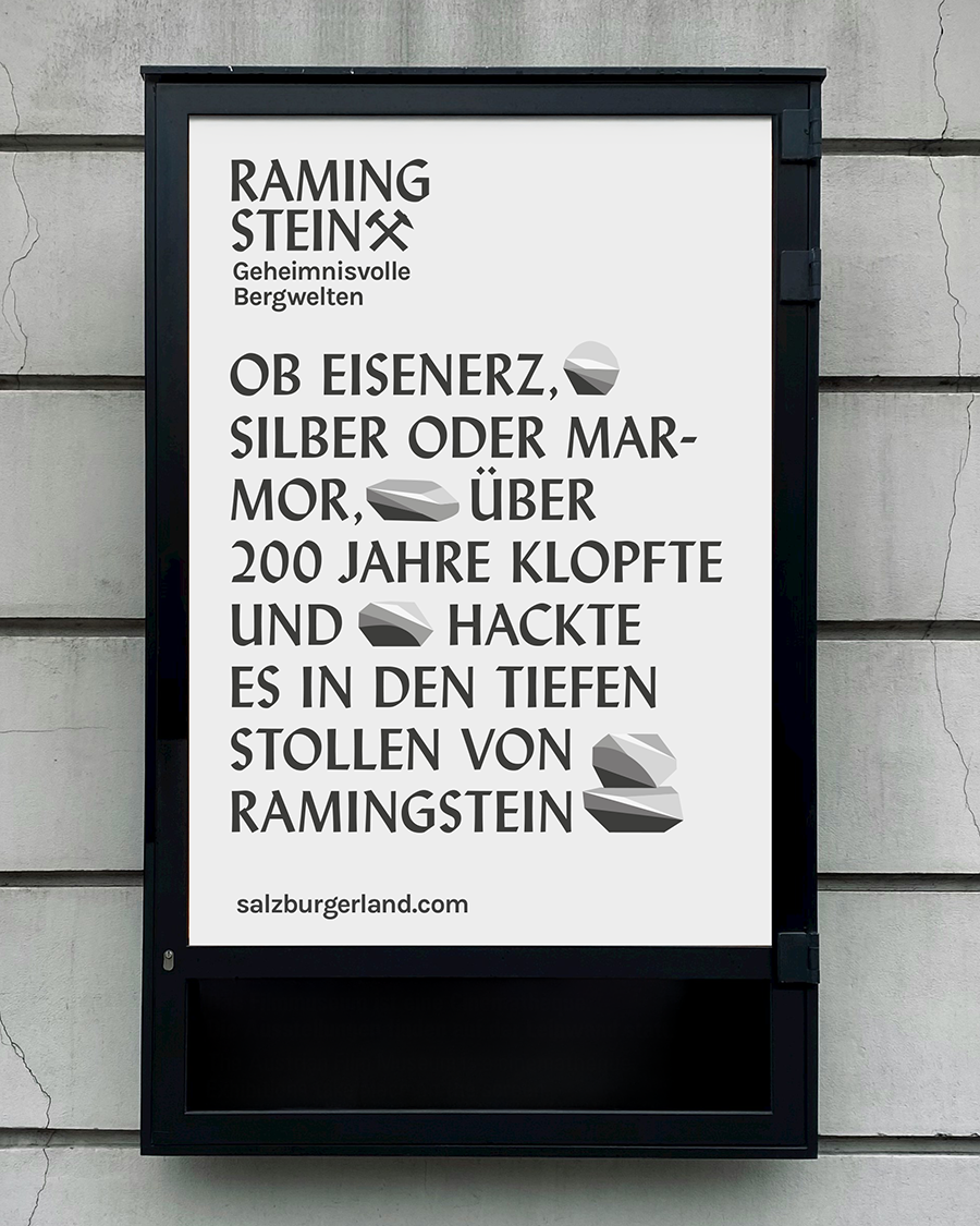 Corporate Design für die Geheimnisvollen Bergwelten von Ramingstein, ein authentisches Erlebnisangebot für die ganze Familie. Dabei handelt es sich um drei Erlebnisräume (Burg Finstergrün, Silberbergwerk und Hochofen), in denen es sowohl um den Bergbau, als auch um die Bergkraft geht. Der Stein wird als zentrales Element zum Begleiter und Symbol […]